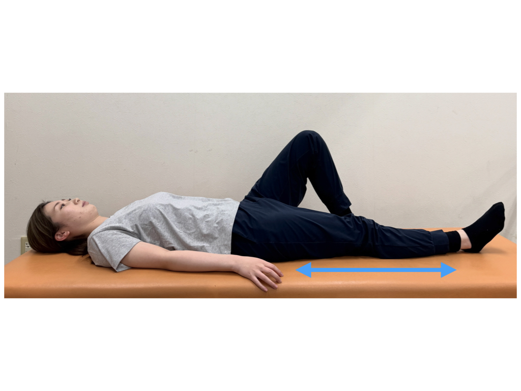 - 椅子またはベッドなどに両足を乗せる(股関節90°・膝関節90°)、または、両膝を曲げる。