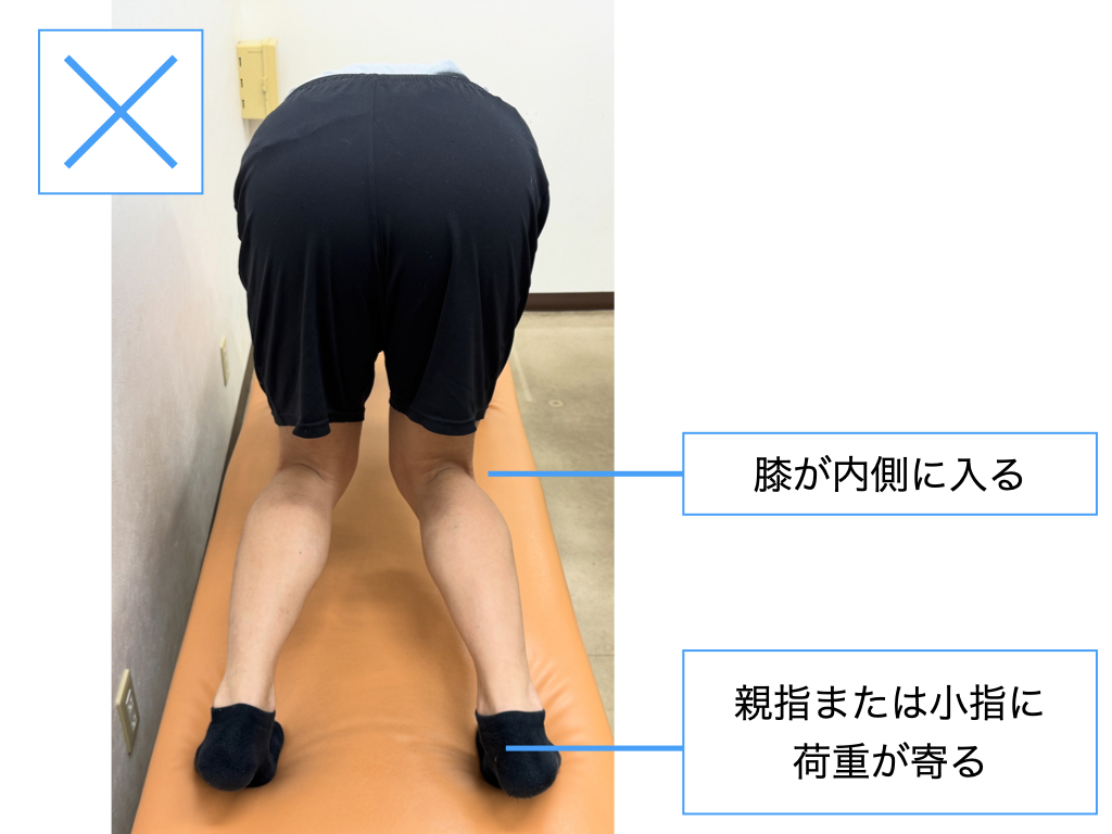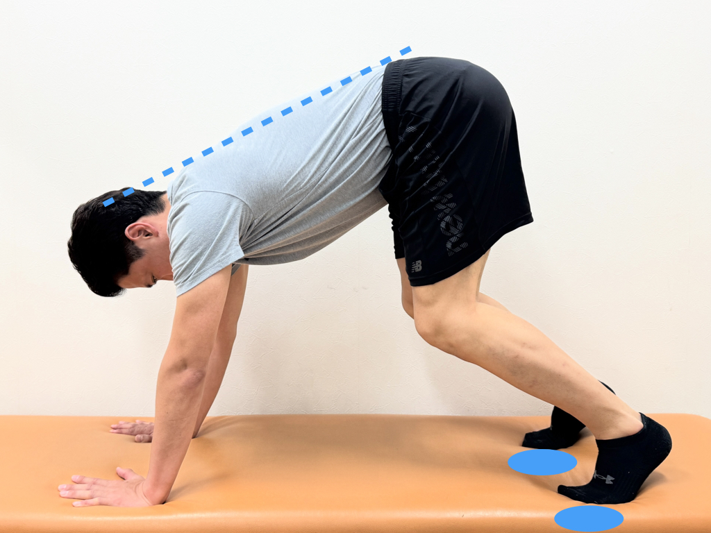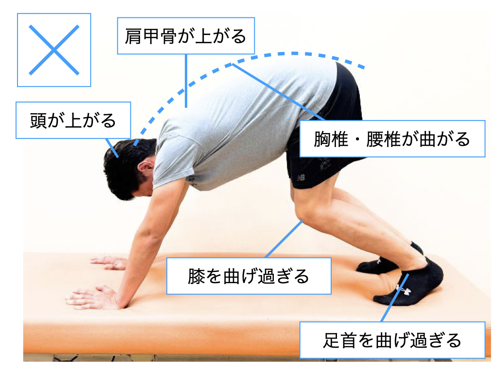 お尻を上げない、頭を下げない、つま先を上げないように注意する。